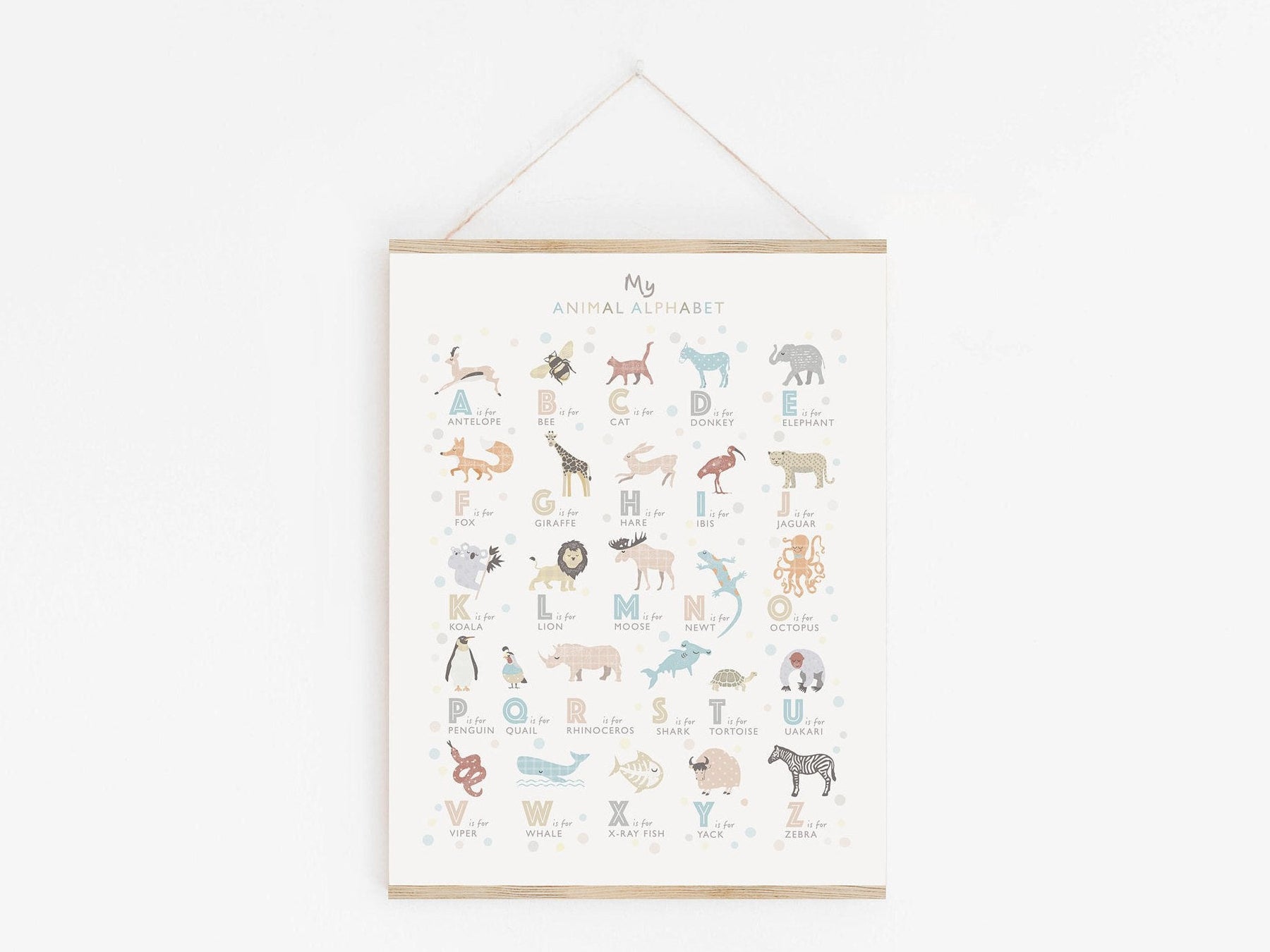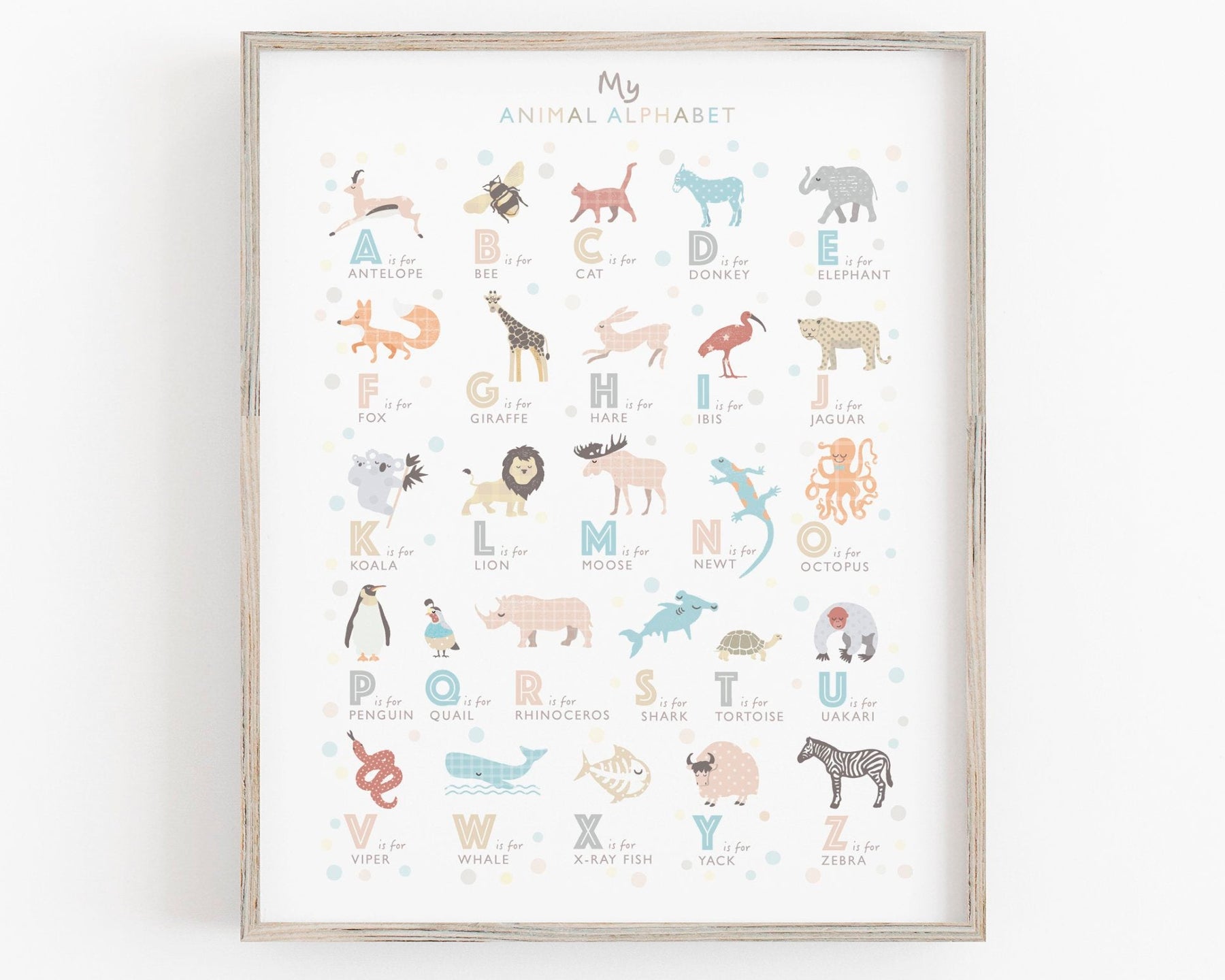 - It’s a lovely animal alphabet print for learning all about the animals and perfect for little nature explorers.