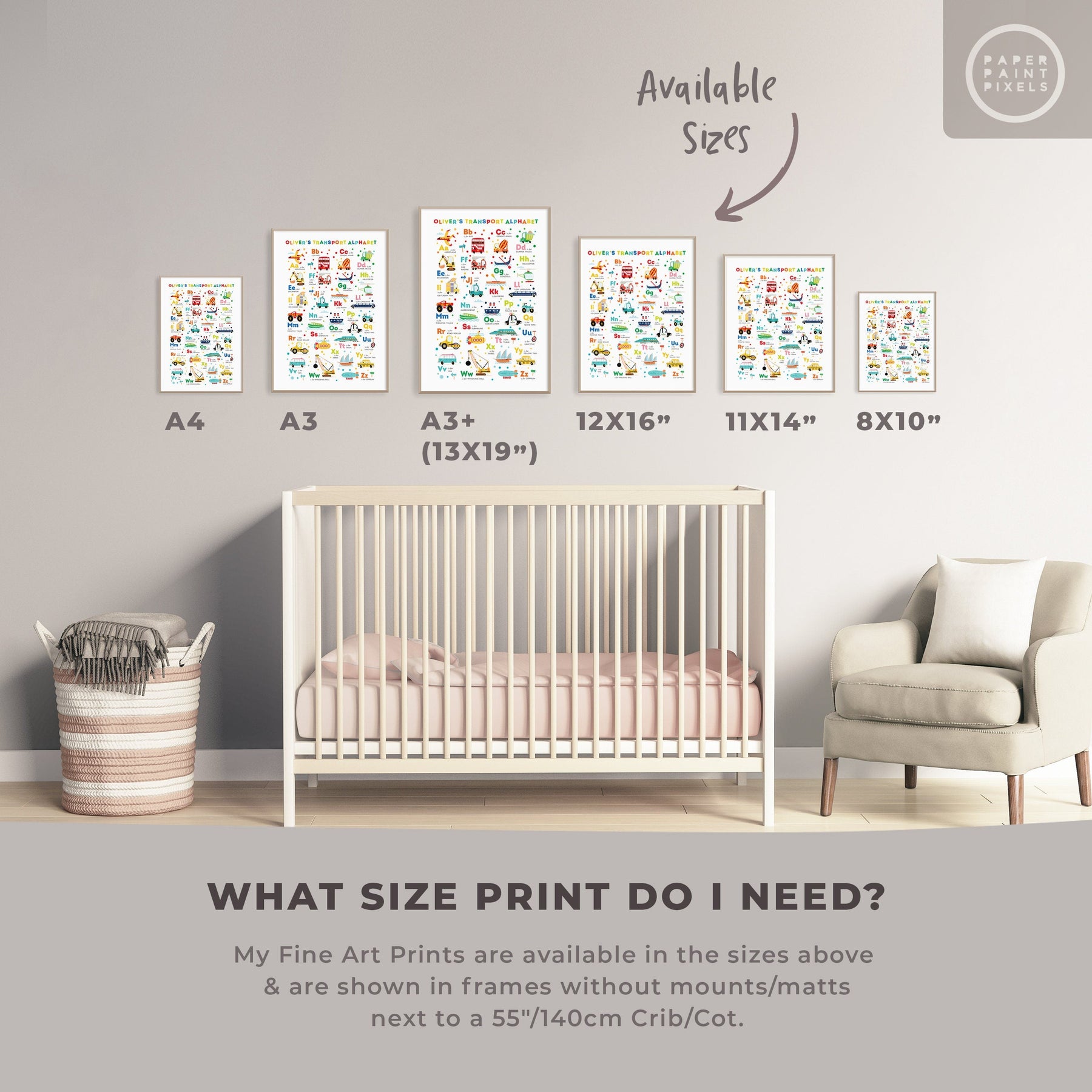 Bring the alphabet to life with our vibrant Transport Alphabet Poster, perfect for vehicle-themed nurseries and toddler rooms. Featuring bright, cheerful illustrations of planes, cars, and trucks, this fine art print is designed to captivate your little one's imagination.