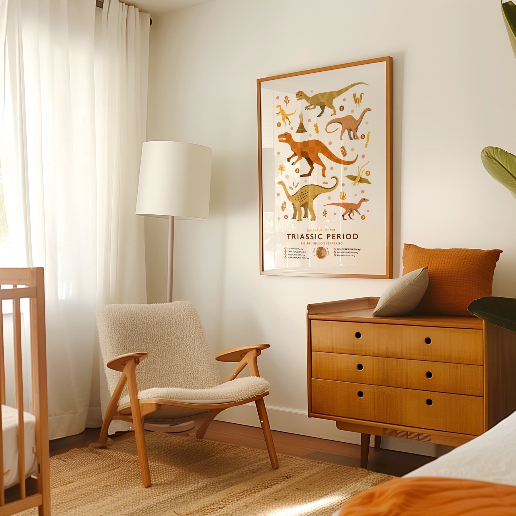 Illustrated in its own unique colour palette, this print is a stunning piece on its own, perfect for sparking conversations about our planet's incredible past. It's a sophisticated and engaging addition to any modern, nature-inspired playroom or bedroom.