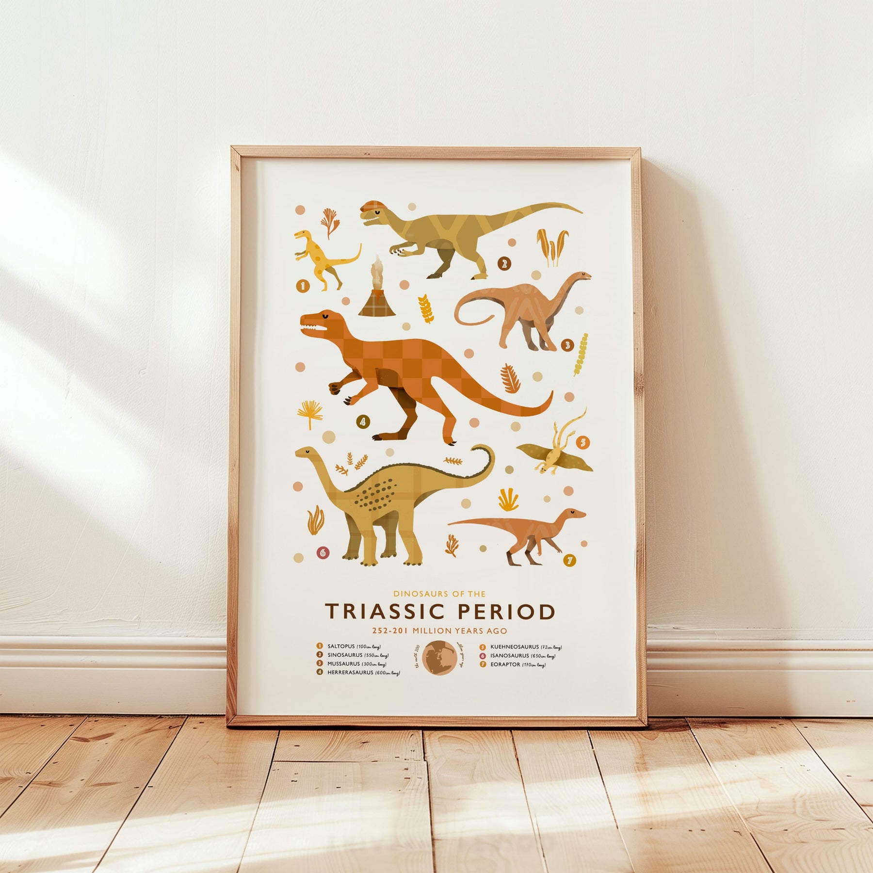 This print is one of three in my 'A Journey Through Time' collection, which also includes the Jurassic and Cretaceous eras. Display them together to create a beautiful gallery wall that tells the complete story of the dinosaurs.