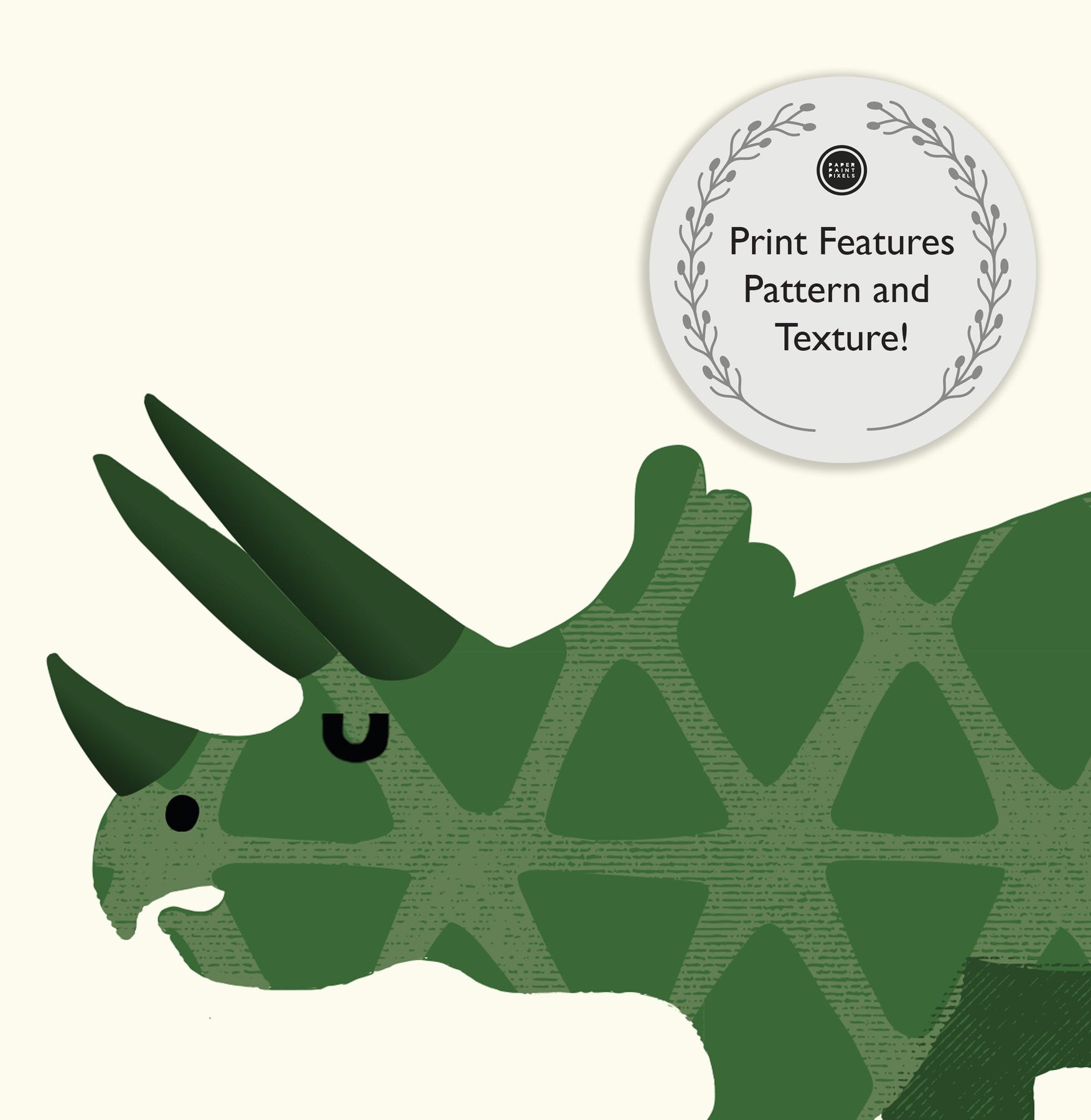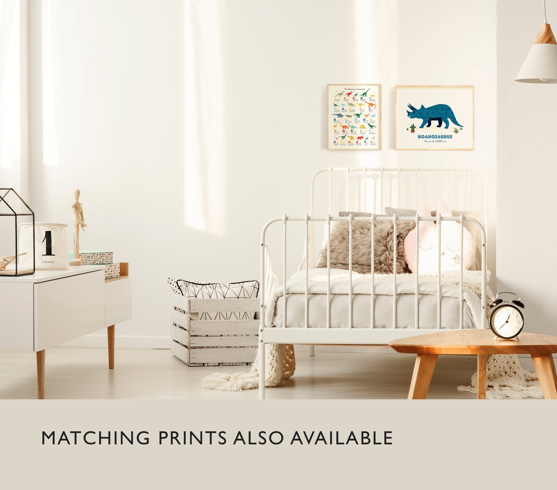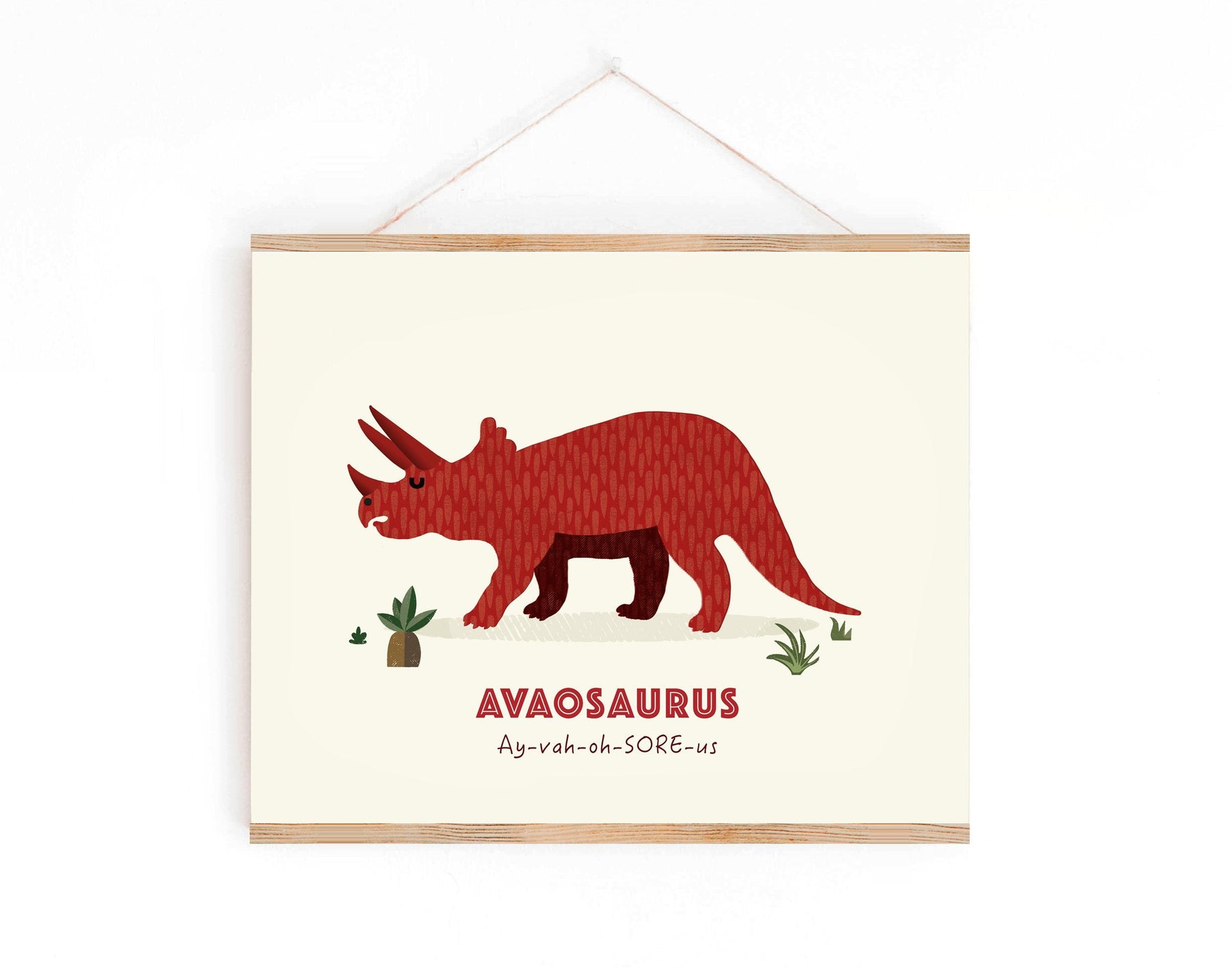 Designed with your little one in mind this super quality Triceratops Nursery Print contains a friendly T-Rex illustration and their very own Dino Name underneath, along with the phonetic pronunciation too!