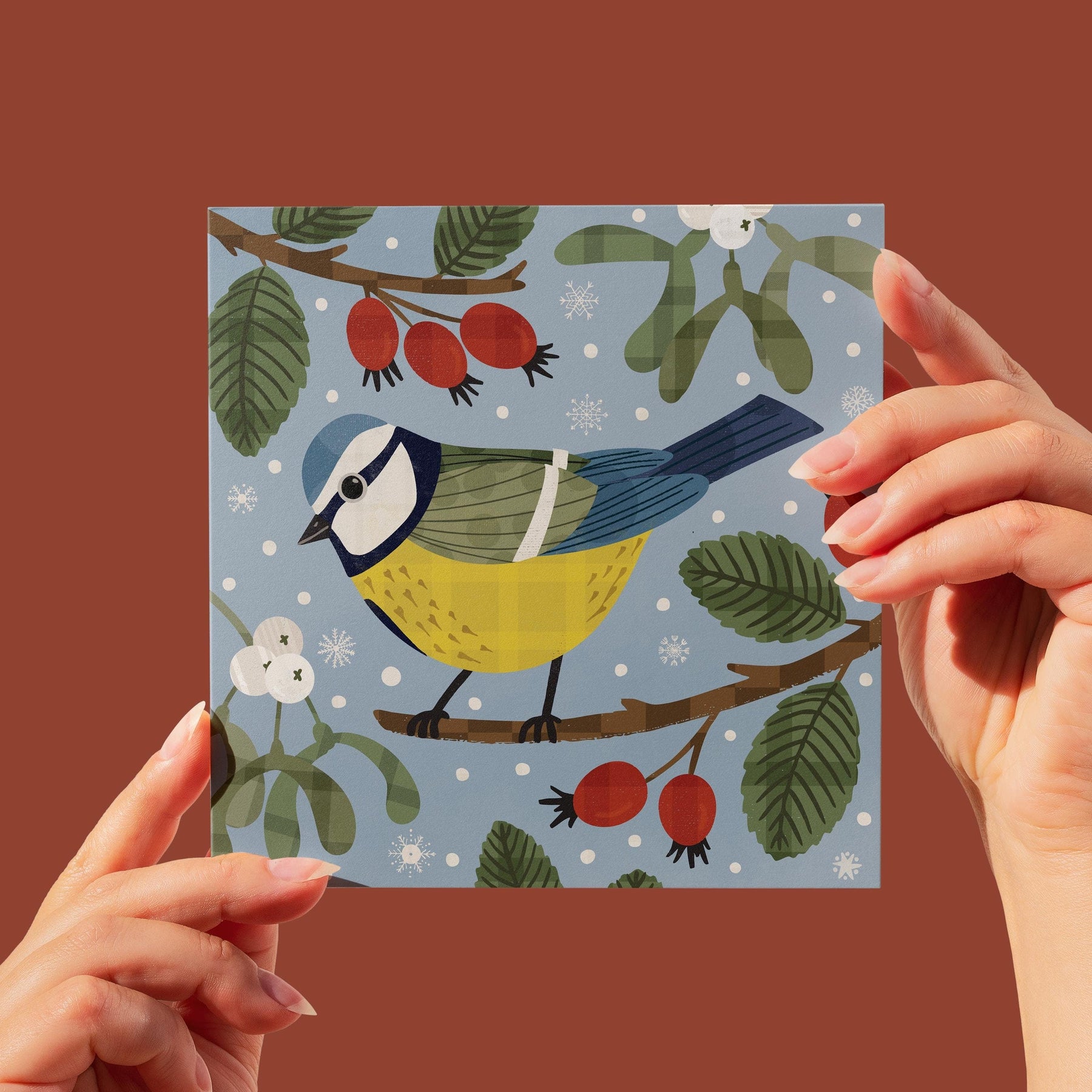 Add a touch of British charm to your holiday greetings with our Luxury Blue Tit Christmas Card. Featuring a beautiful illustration by Carolyn Rouse, this card is perfect for nature enthusiasts and gardeners alike. The delightful Blue Tit sits atop a Wild Rose Branch, surrounded by Mistletoe, gazing out at the world.