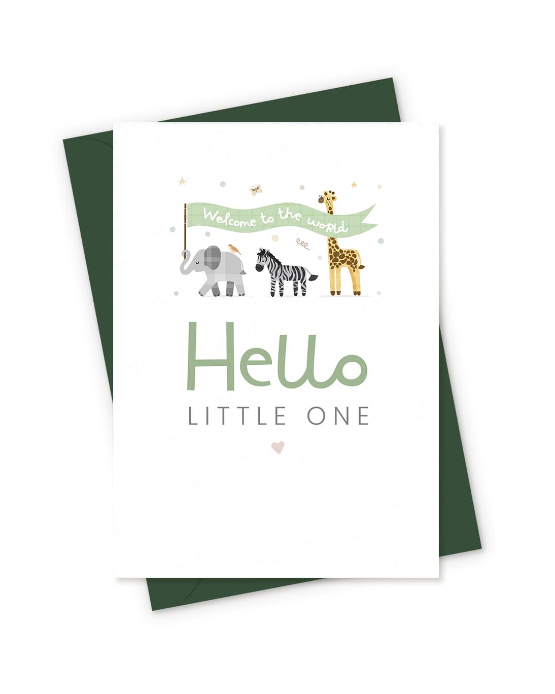 Simply enter their name to create your custom card. If you'd prefer it without a name, the standard version comes with the classic 'Hello Little One' greeting.