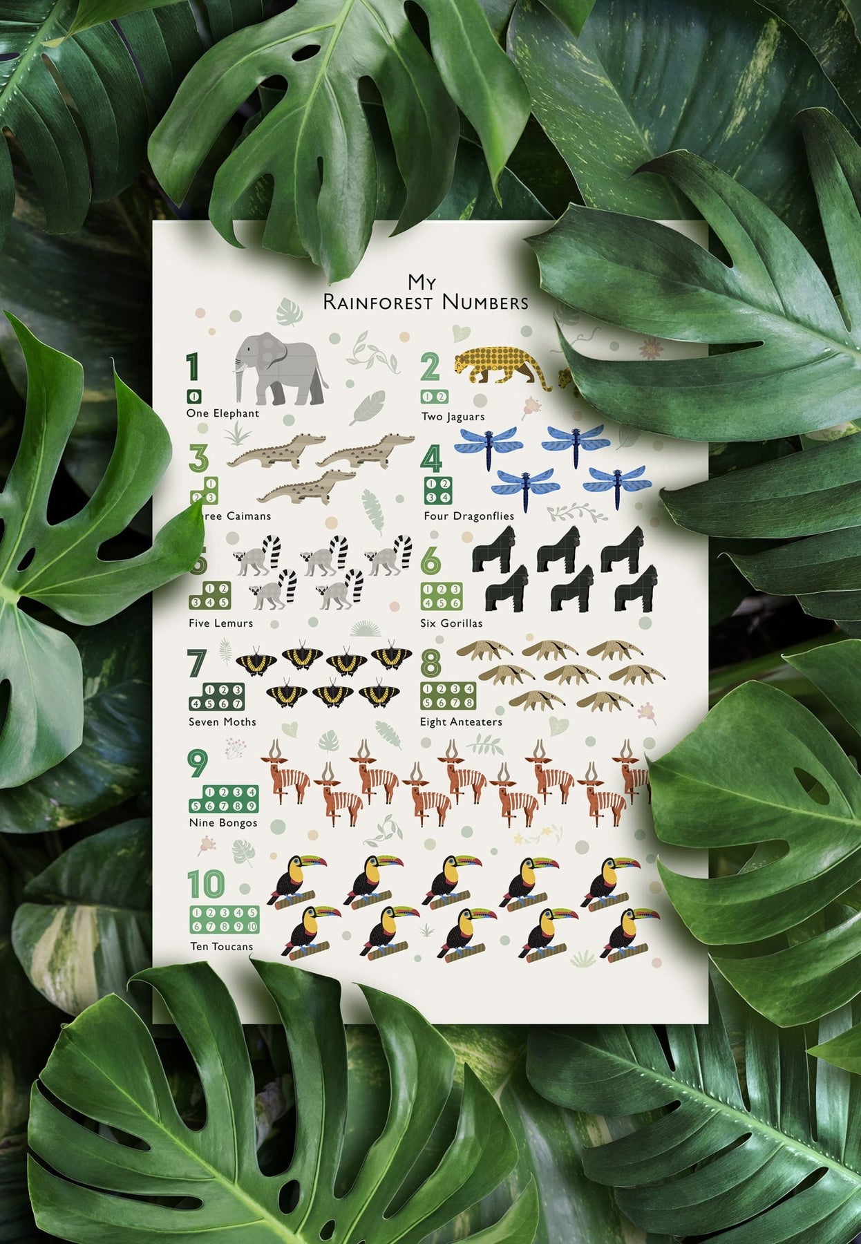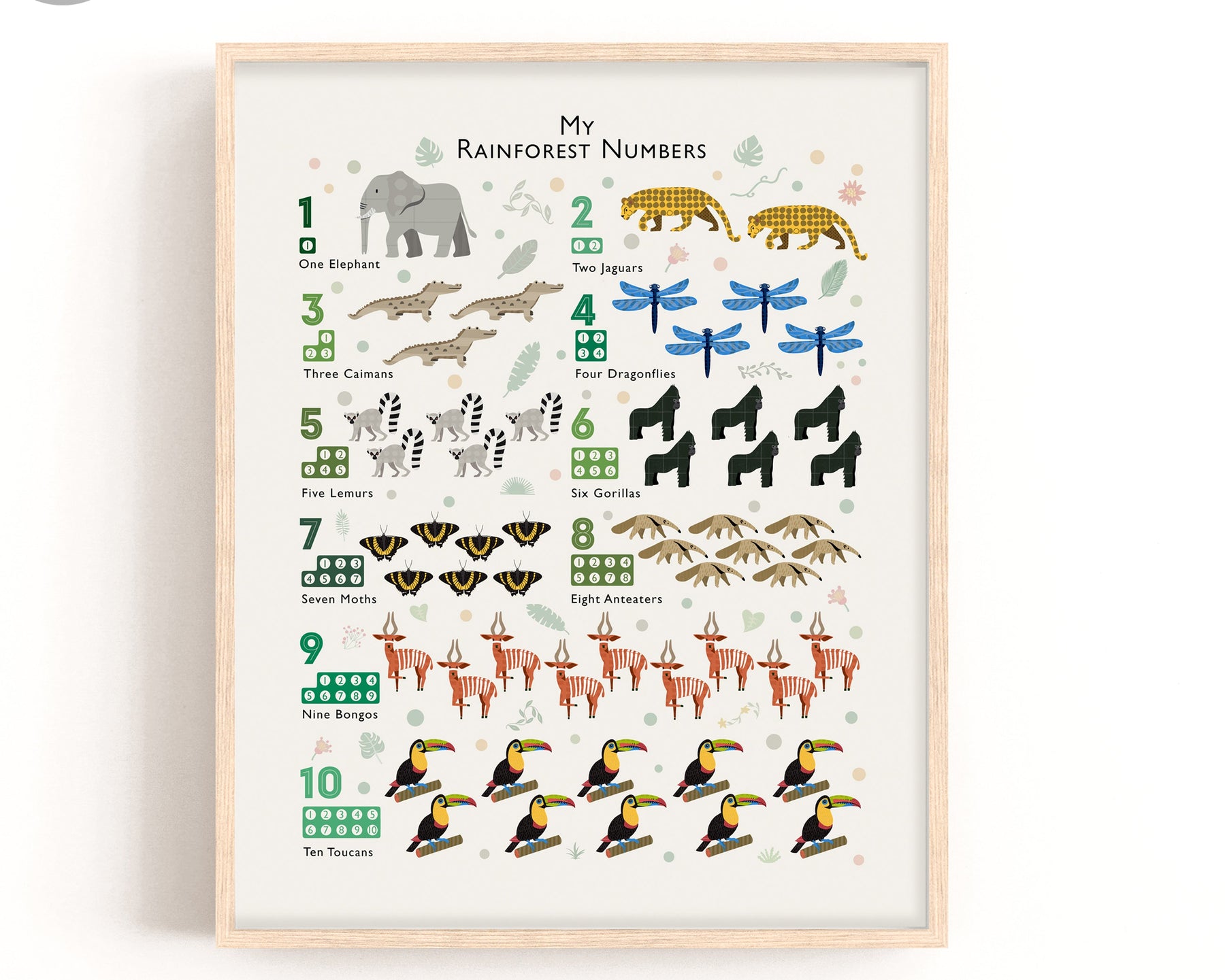 Our super cute Rainforest Nursery Numbers Print - a great keepsake for your a child's room.
