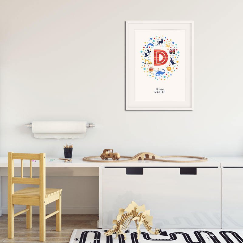 A gorgeous personalised print beautifully illustrated with cute things beginning with the Letter D!
