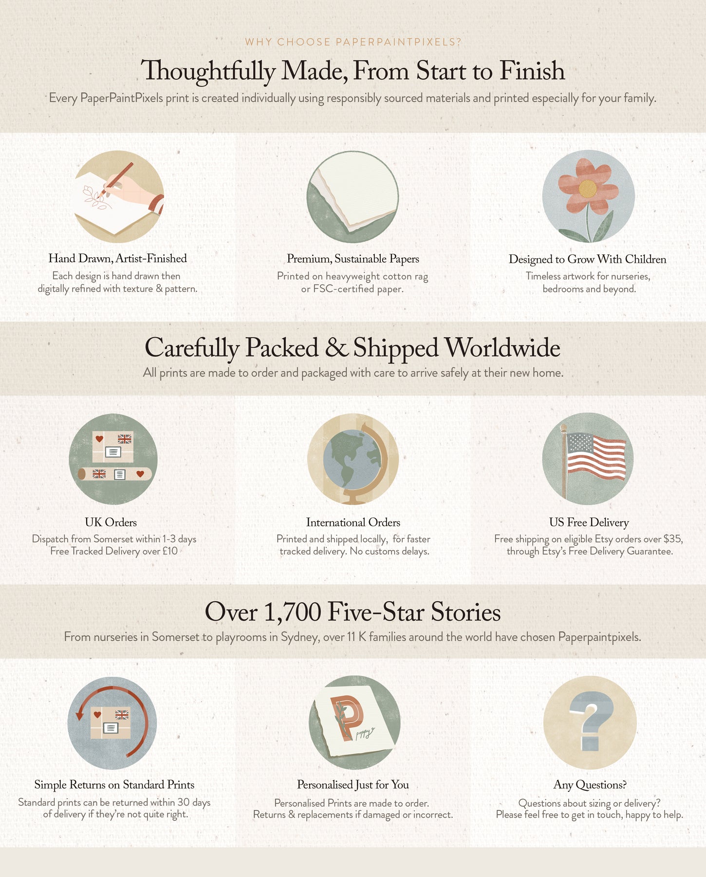From nurseries in Somerset to playrooms in Sydney, over 11 K families around the world choose Paperpaintpixels.