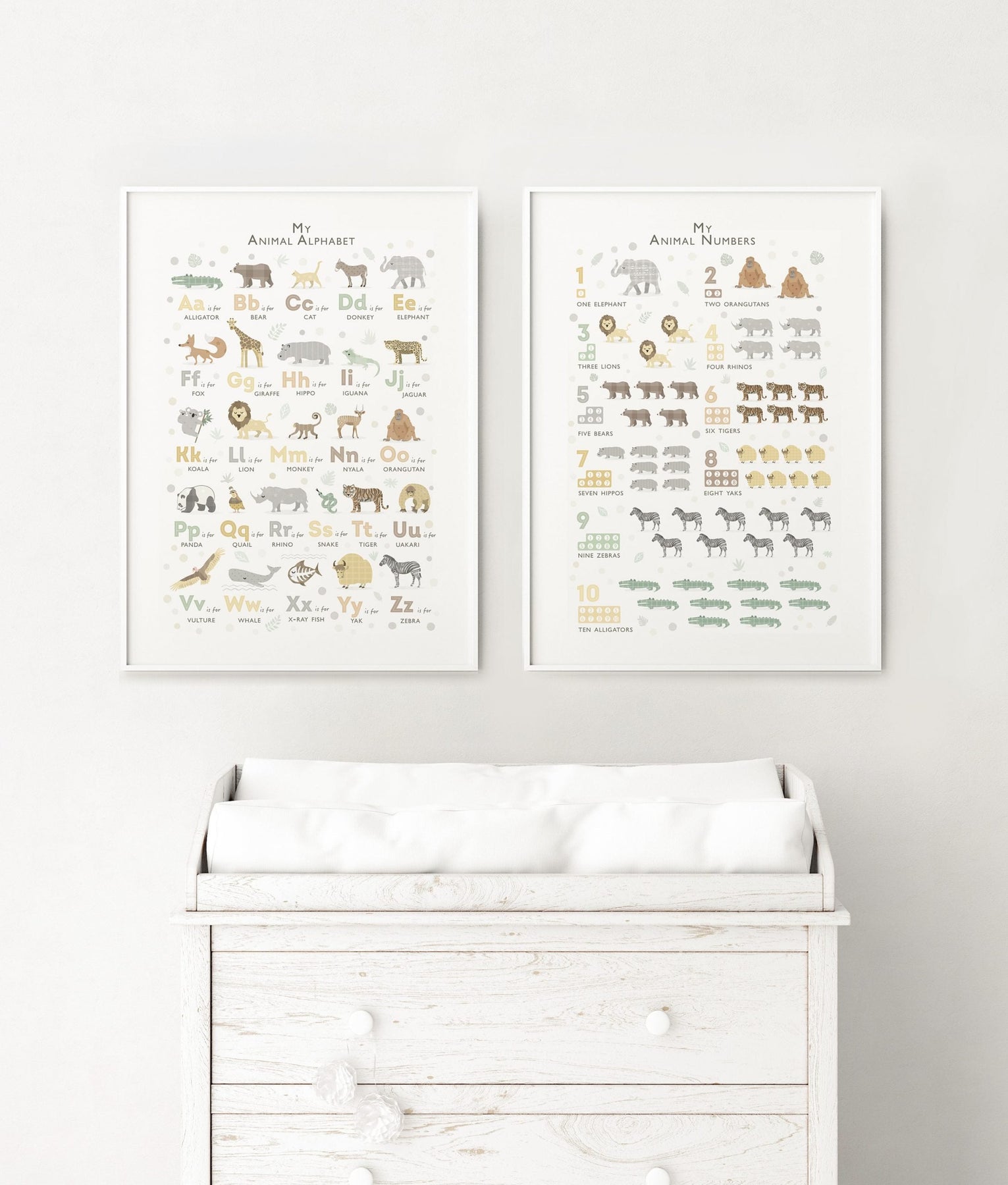 They are a perfect addition to your safari nursery decor. This Safari Print Set will be at home in any stylish neutral nursery. These educational prints are great for learning animals, letters and numbers to 10.