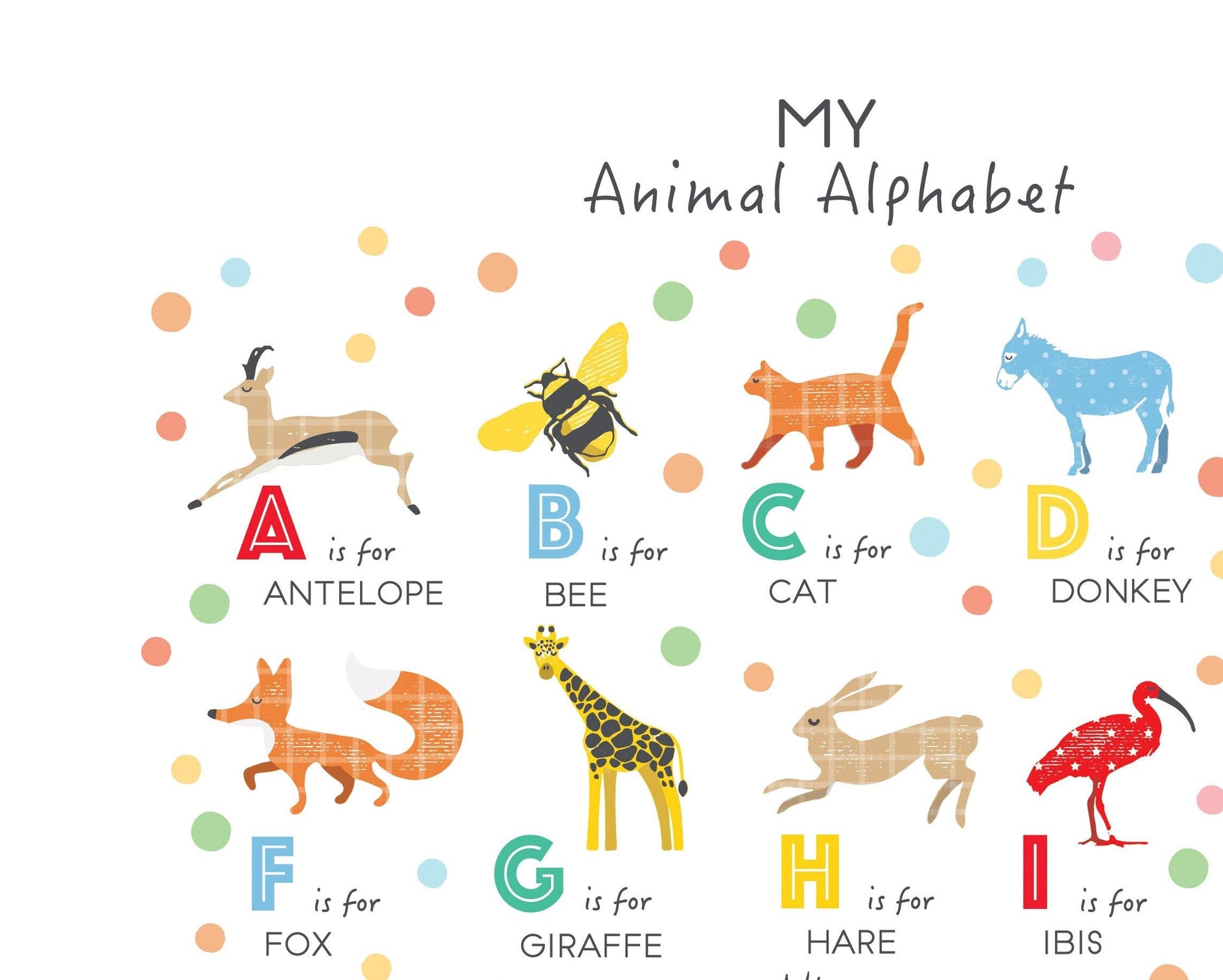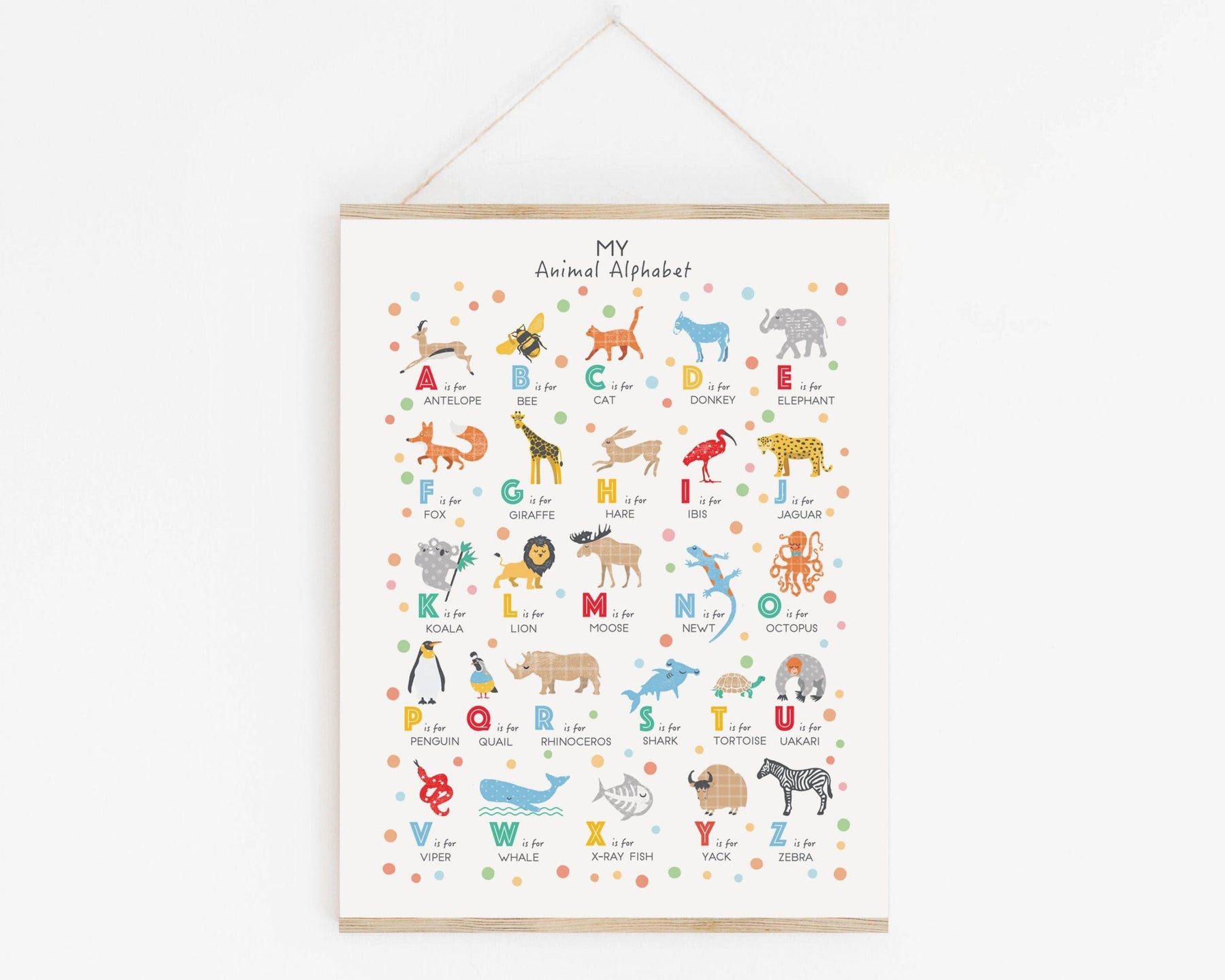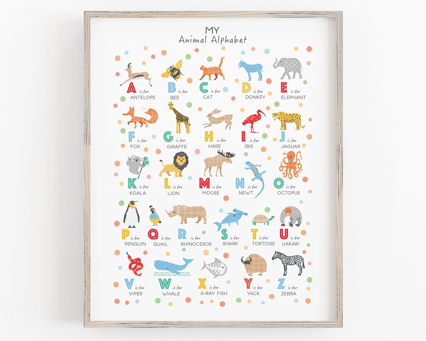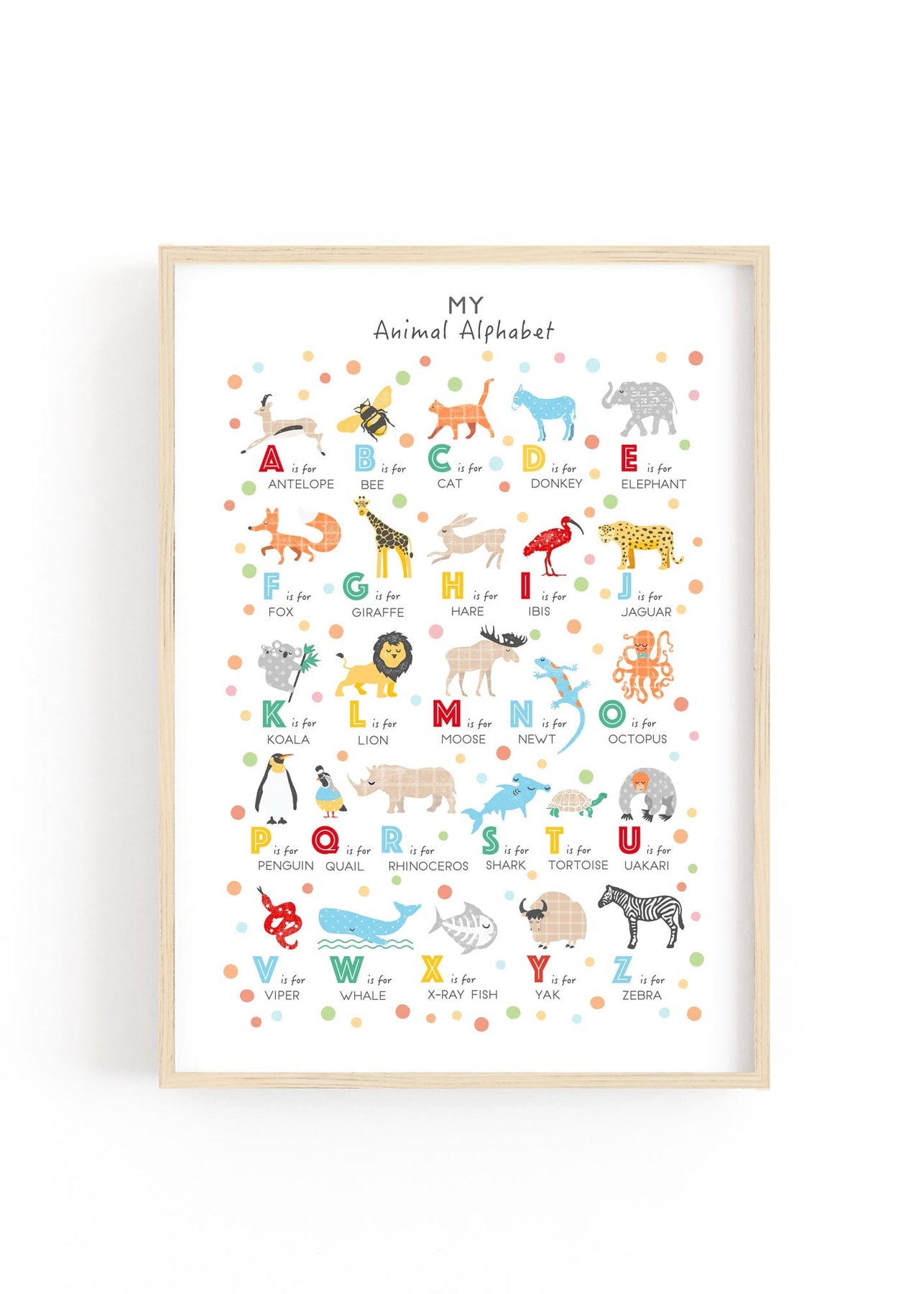 • It’s a lovely animal alphabet print for learning all about the animals and perfect for little nature explorers.