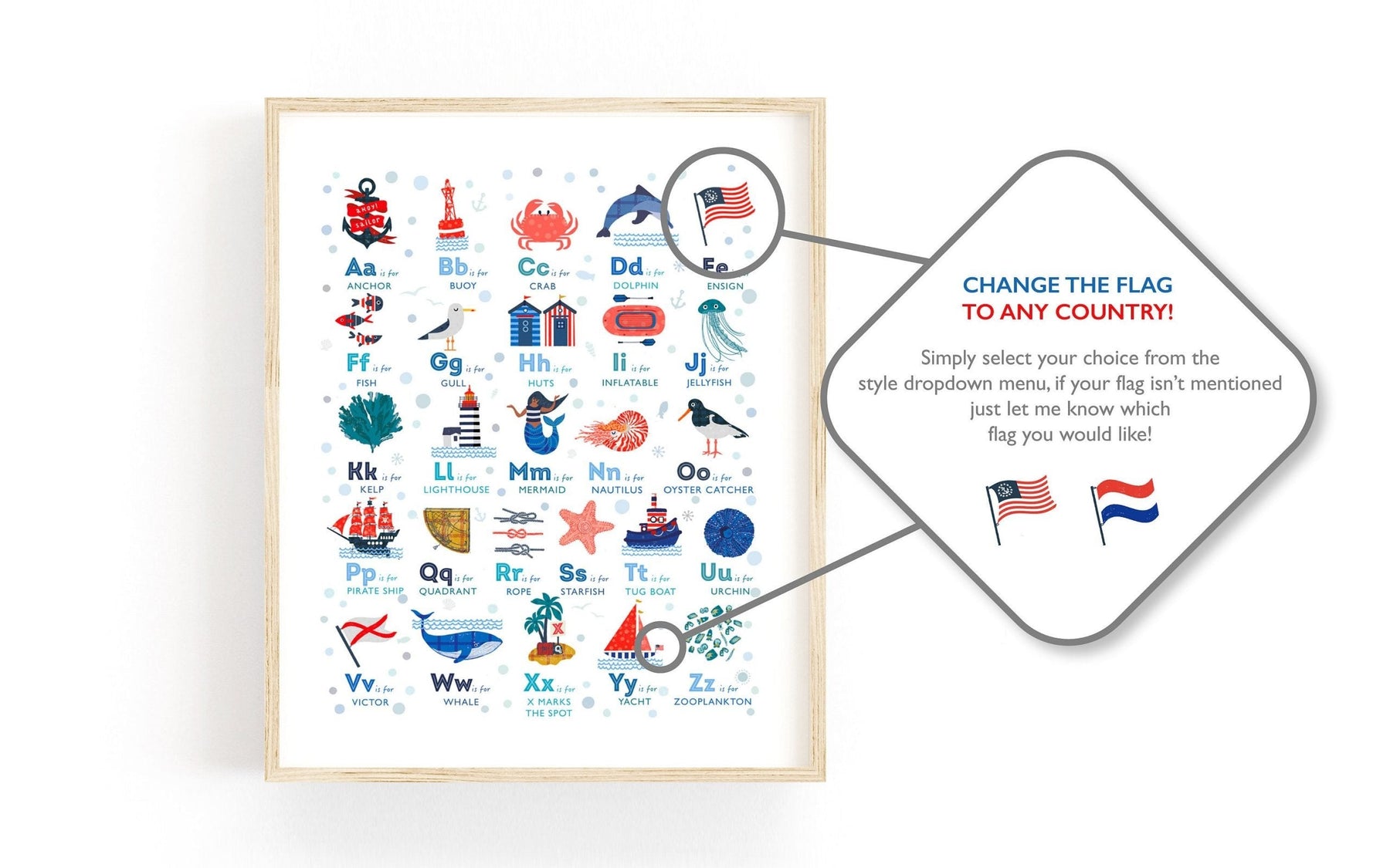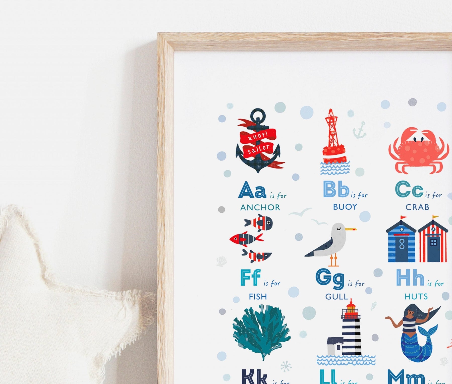 Add a little splash of the seaside to your little one's room with this Nautical Theme Alphabet Print!