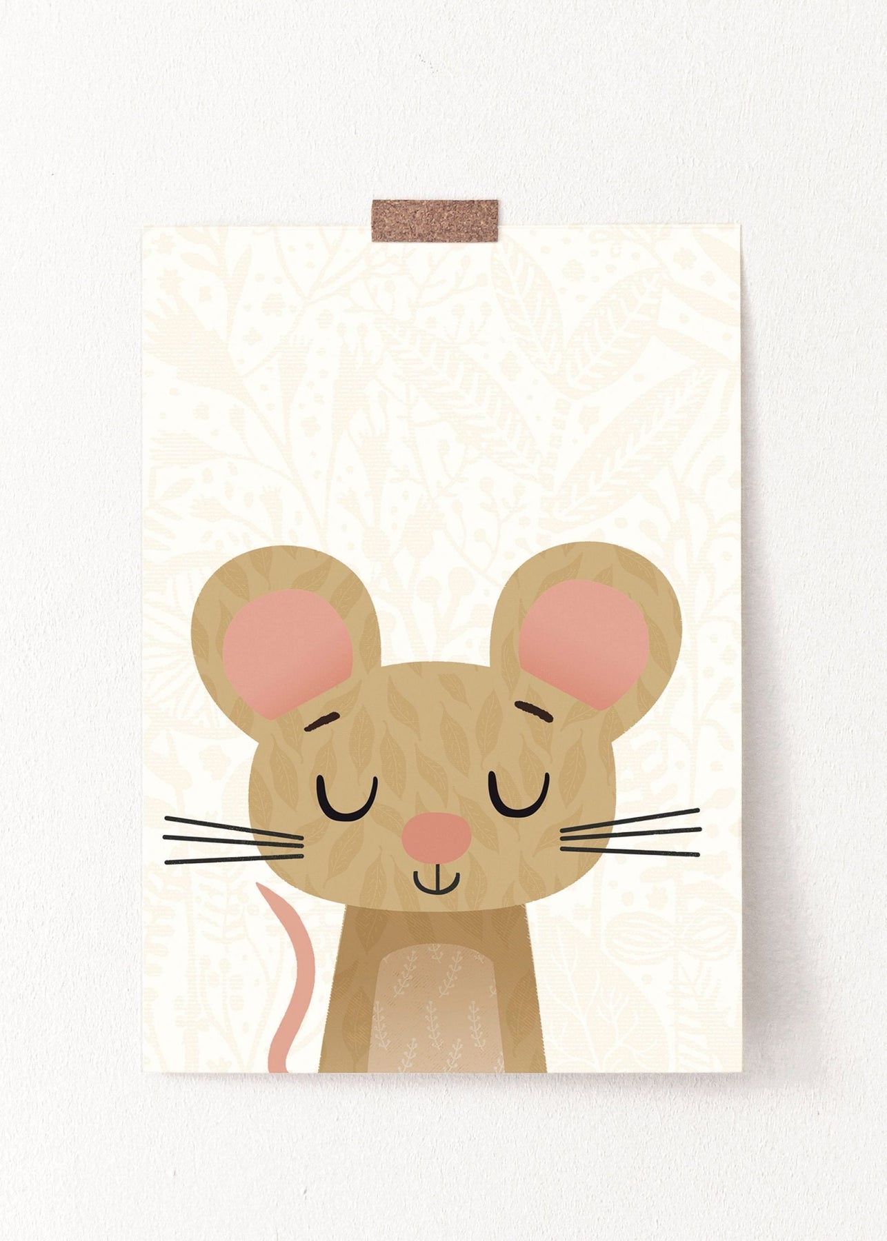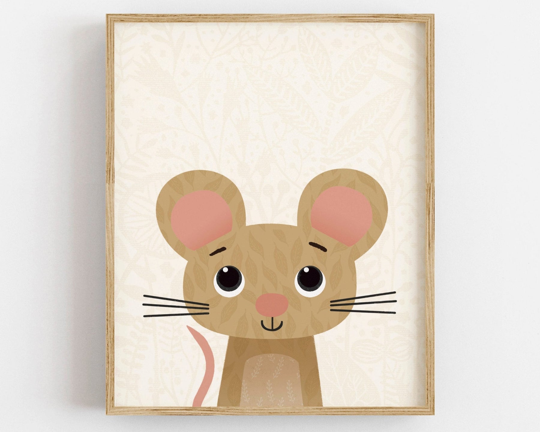 A cute Mouse nursery print - with a large friendly face, great for little ones to look at. Lovely keepsake to brighten the walls in your little one's room.