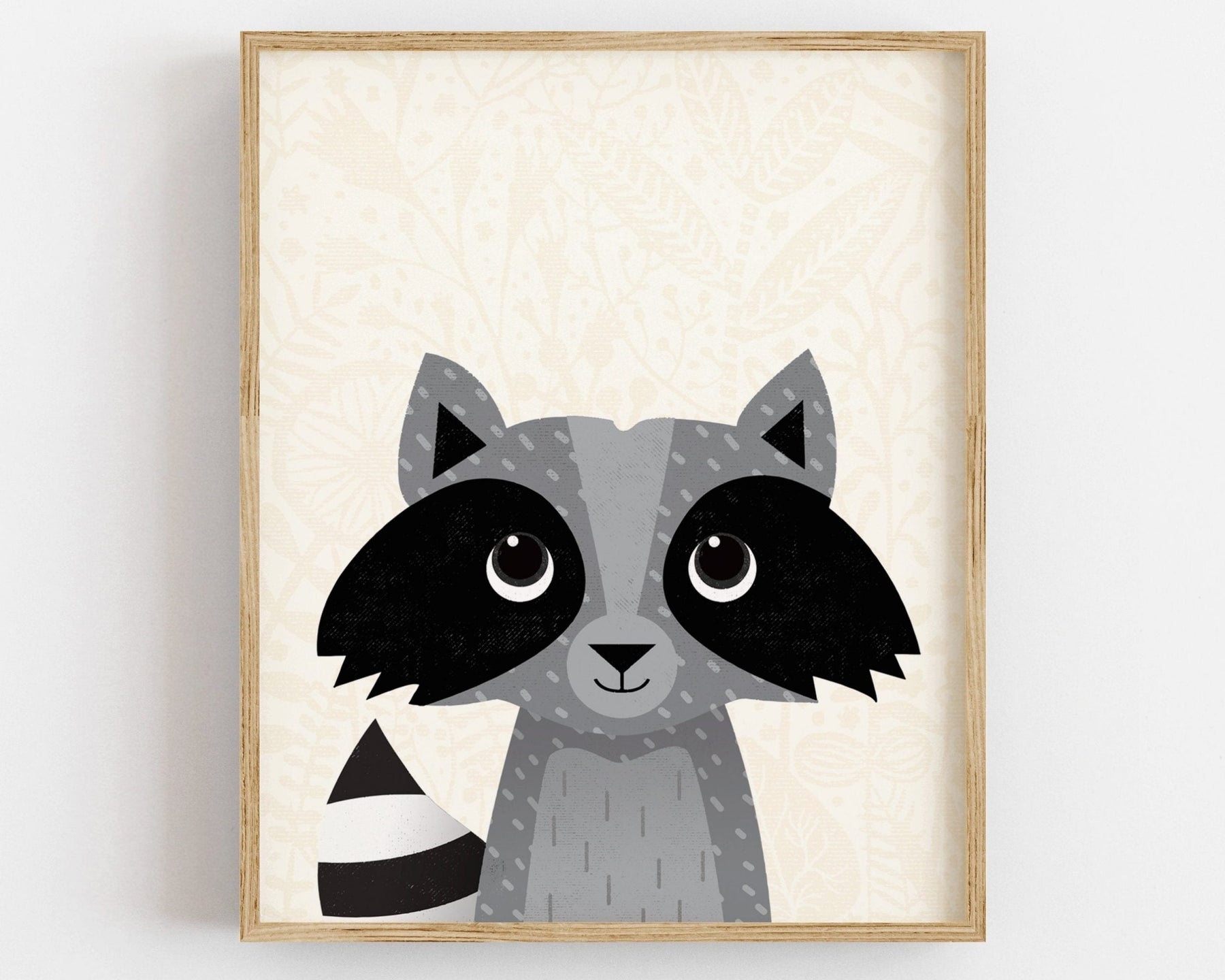 A Gorgeous Woodland Animals Racoon Nursery Woodland Print - a great keepsake for your a child's room.