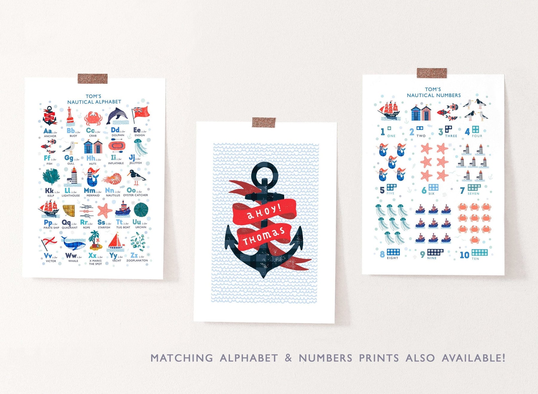 Ahoy Sailor! A gorgeous personalised nautical nursery print.